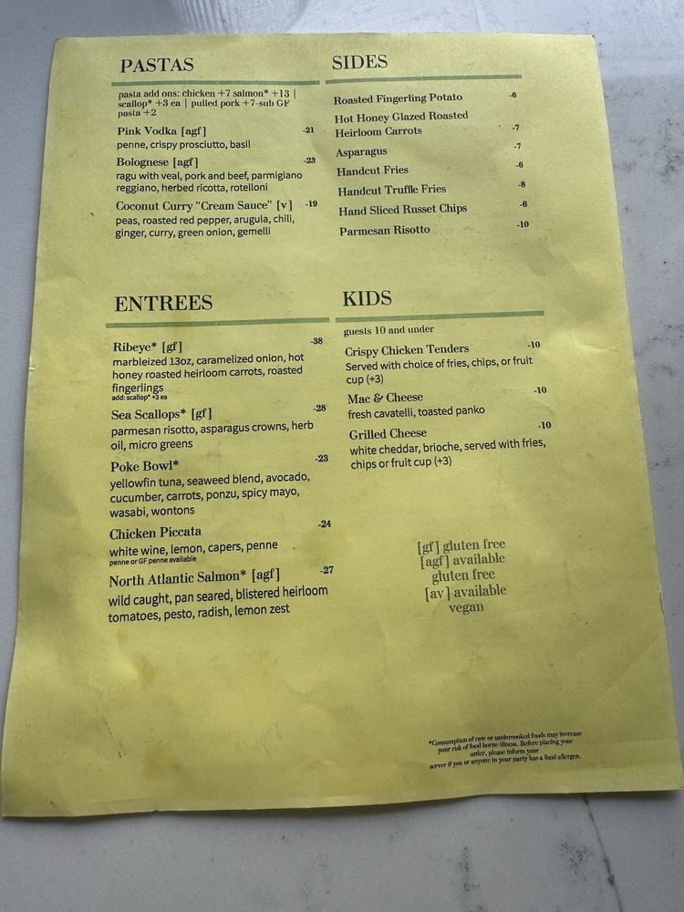marbleized 13oz Ribeye, Compound butter, hot honey roasted heirloom carrots, roasted fingerlings add: scallop +3 ea